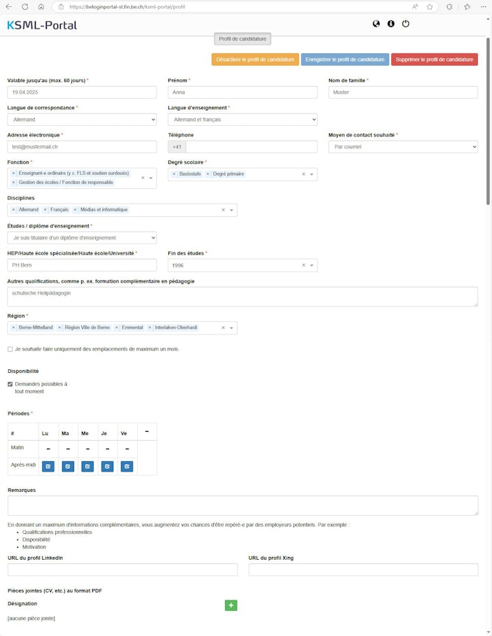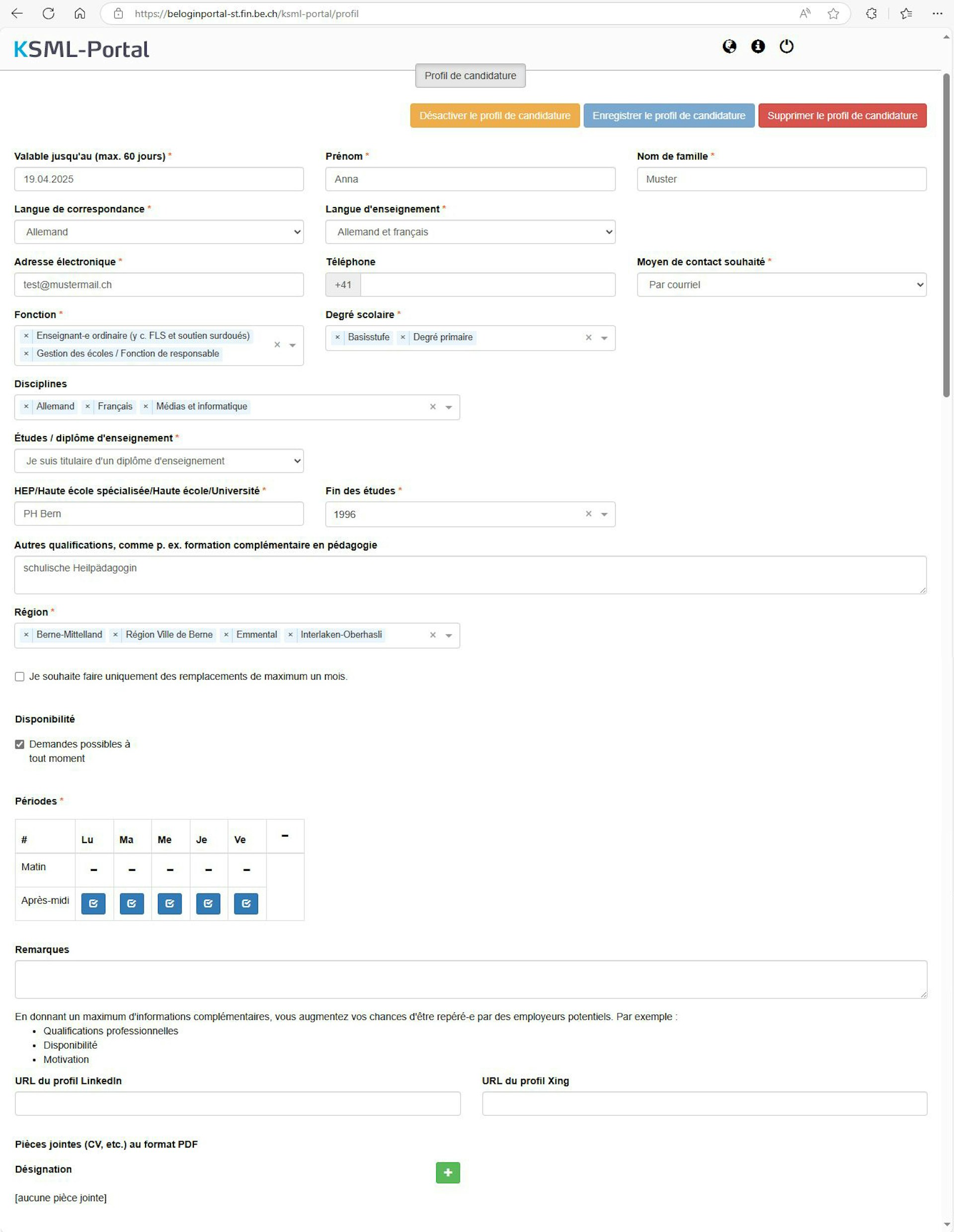 Vous pouvez directement accéder à la page du profil de candidature à l’adresse suivante : https://www.belogin.directories.be.ch/ksml-portal/#/
