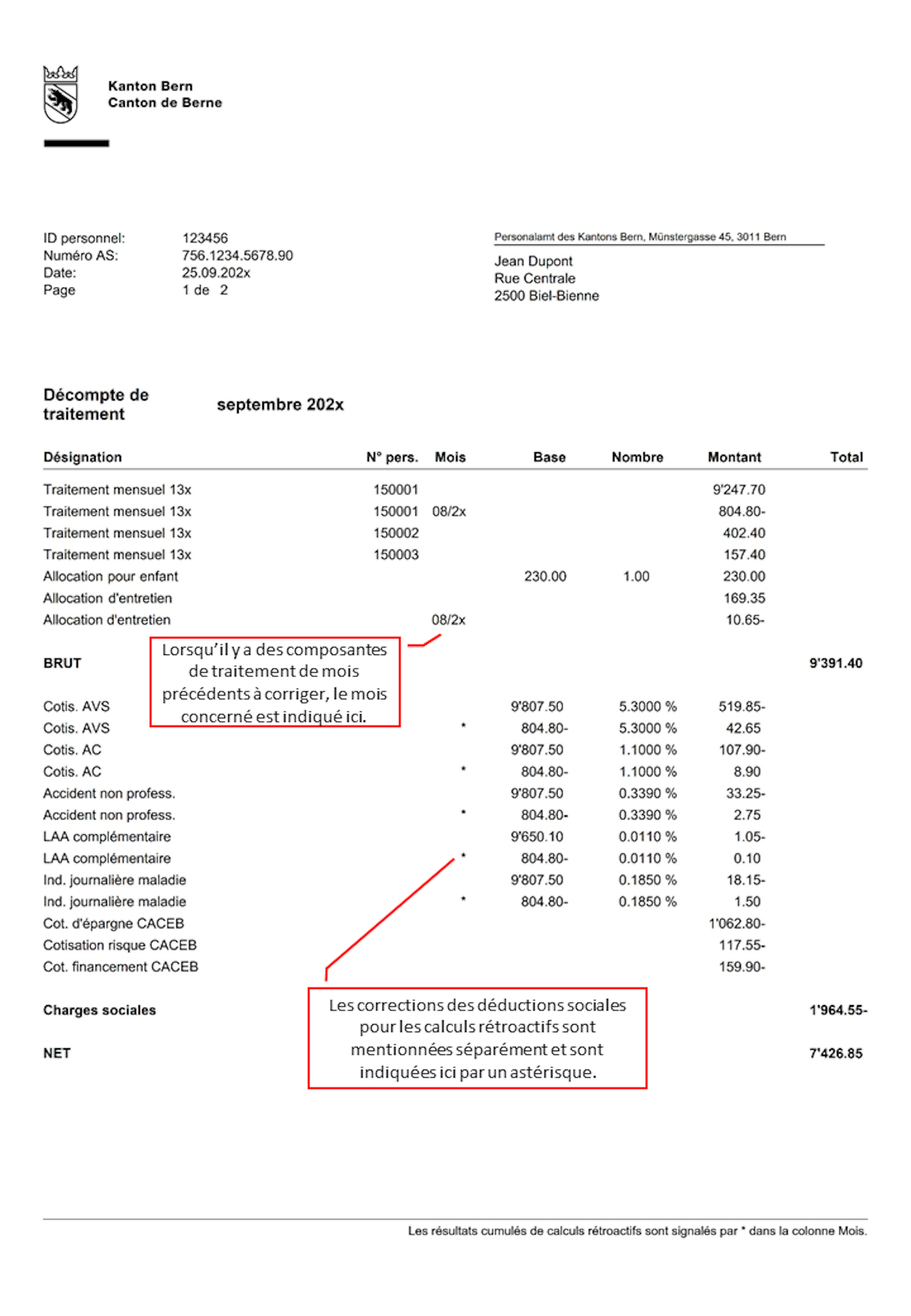 Décompte de traitement avec calcul rétroactif (des mois précédents)